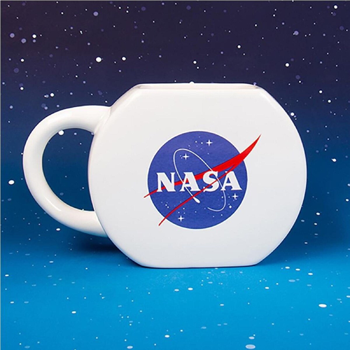 The shaped mug holds a capacity of 400ml and features the iconic NASA logo on one side and Apollo 11 artwork on the other.