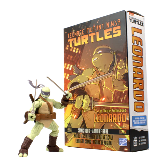 Includes a 100 page IDW Leonardo comic that includes Secret History of the Foot Clan #2, TMNT #36 and TMNT #67 with original exclusive cover artwork by Mateus Santolouco.